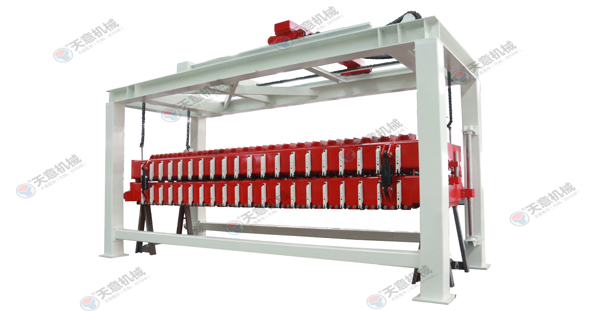 坯體經(jīng)過(guò)發(fā)泡靜停達(dá)到切割要求后模具轉(zhuǎn)移至切割區(qū),由翻轉(zhuǎn)機(jī)分離模具并將坯體翻轉(zhuǎn)90度放到蒸養(yǎng)小車(chē)上,然后經(jīng)過(guò)切割工序?qū)ε黧w進(jìn)行側(cè)面切割刨槽及水平和垂直分割,使之達(dá)到外觀尺寸要求,切割工作可以機(jī)械化進(jìn)行也可人工操作,這道工序直接決定ALC板材的制品外觀質(zhì)量以及某些內(nèi)在質(zhì)量。